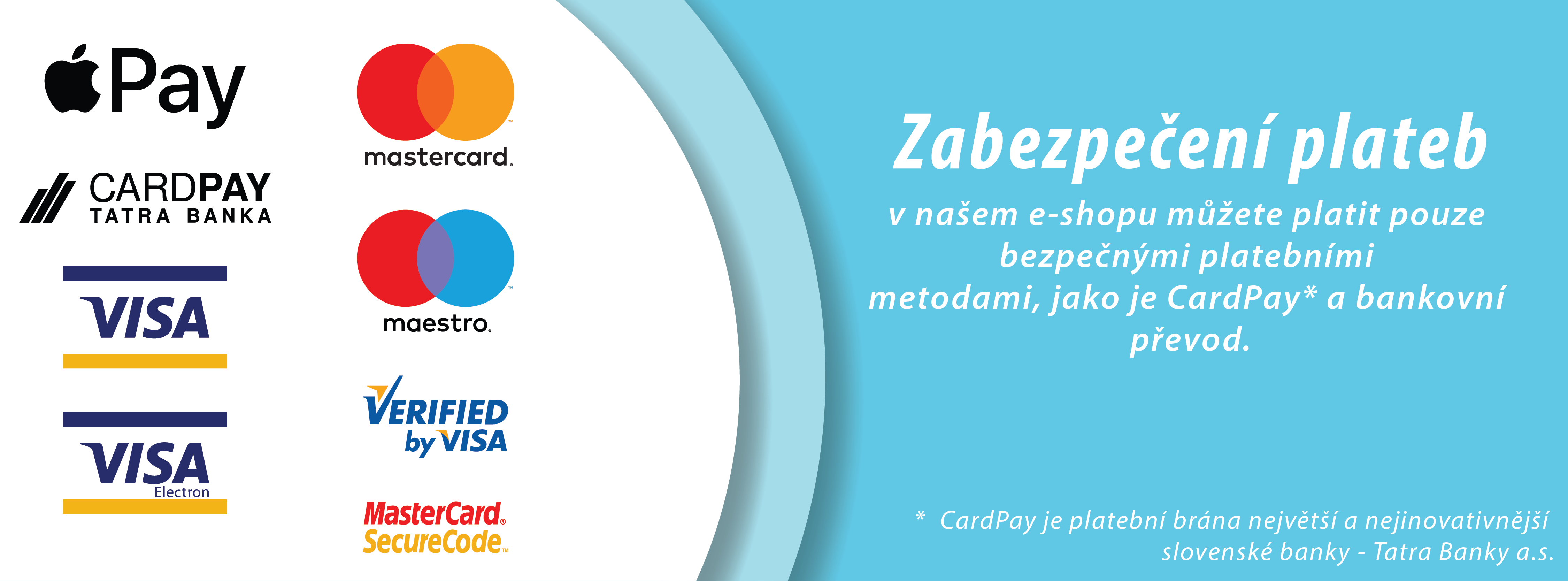 Nabízíme možnost platby prostřednictvím CardPay,Gopay, Stripe, PayPal, platby na fakturu nebo převodem na účet